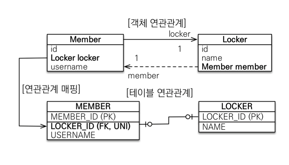 - 주 객체가 대상 객체의 참조를 가지는 것처럼 주 테이블에 FK를 두고 대상 테이블을 찾는다.